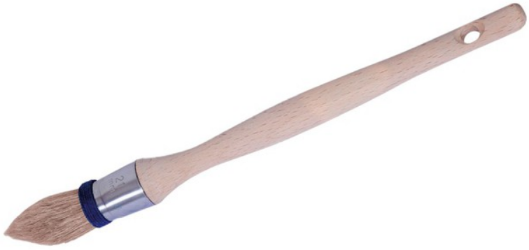 cette brosse est en soies blanches pures sélectionnées, Montées à la main sur fleur. Tirure longue. Double hauteur de collet ficelle rouge. Virole cuivre double sertissage. Manche en bois verni incolore.